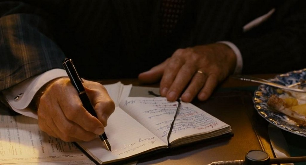 В руках можно видеть классическую шариковую ручку Montblanc.