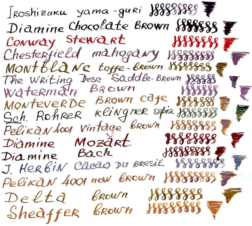 http://www.fountainpennetwork.com/forum/index.php/topic/209498-sepia-toned-ink-comparison-32-inks/