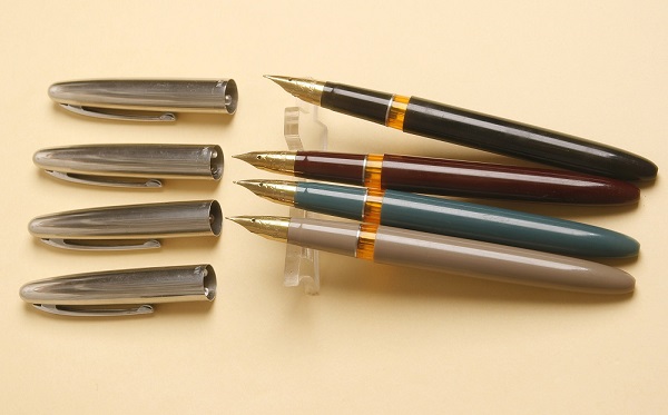 Одна из самых удачных и популярных моделей фирмы. Произведена в 80е годы. В наличии 4 цвета - бежевый, зеленый, бордовый и черный. Открытое перо - сталь с иридиевым наконечником, F. Пишет легко и гладко. Система заправки - пипетка. Длина в колпачке - 14,1см, длина без колпачка - 13,3см, толщина - 1,1см. Вес в колпачке - 19г, вес без колпачка - 12г.