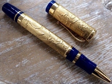 Ручка полностью золотая (750 проба) с синими вставками из смолы.
