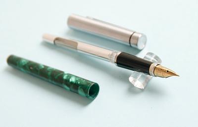 В наличии 3 цвета — зеленый, черный и бордовый. Заправка — пипетка. Перо закрытое — FM.