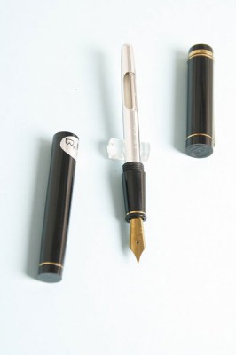 Отличная ручка из темно–синего пластика с тонким пером F на каждый день. Материалы пера — сталь, иридий. Идеально подходит для письма на пористой бумаге и заполнения квитанций мелкими буквами. Подача чернил умеренная. Годы производства: конец 80х — начало 90х гг. ХХ века.
