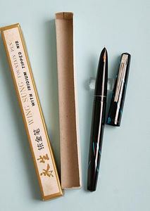 Отличная ручка из темно–синего пластика с тонким пером F на каждый день. Материалы пера — сталь, иридий. Идеально подходит для письма на пористой бумаге и заполнения квитанций мелкими буквами. Подача чернил умеренная. Годы производства: конец 80х — начало 90х гг. ХХ века.