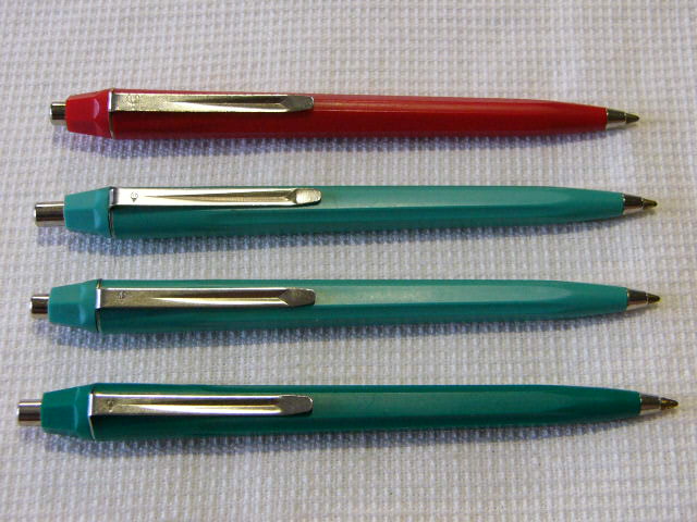 Цвета авторучек: светло-зелёная, тёмно-зелёная, красная.