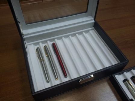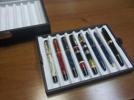 Они радуют, у меня просто снорковское отношение к пользованию, никогда больше одной заправленной не держу. С собой ношу редко, на работу лучше их вообще не брать. Пишу дома письма. А коробки, шкатулки и умолчательные футляры перестали влезать в отведённый им ящик. Потому и начала поиски большой хранилки.