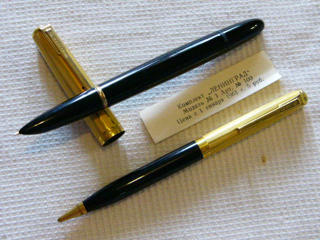 | паровозик писал(а): | | Rebus писал(а): | | Господа! есть такая вот ручка завода "союз" одна из первых моделей,еще довоенная. Хотелось бы поточнее атрибутировать год выпуска,может у кого есть что-то похожее или ссылочкой поделитесь на ресурс? перо из нержавейки,колечки на колпачке золотые. |