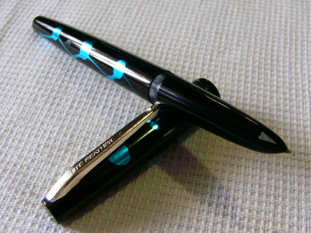Авторучка "Два в одном": на одном конце перьевая авторучка с открытым пером, на другом конце шариковая авторучка.