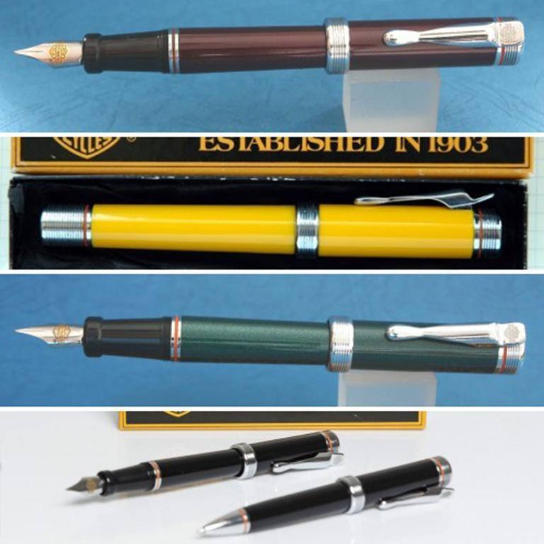 Наборы из 2-х ручек поставлялись в кожаном чехле вместе с кожаной сумкой - как дополнительная опция к мотоциклу.Хотя можно было купить набор отдельно в подарочной коробке,либо отдельно перьевую или шариковую ручку в индивидуальной картонной упаковке. В начале 90-ых годов в Москве мне набор в чехле обошёлся в 100$, покупал и отдельно перьевые ручки по 41$, шариковая стоила 39$. Сейчас ручки довольно часто встречаются на аукционах,правда цены уже далеко не те, винтаж однако.