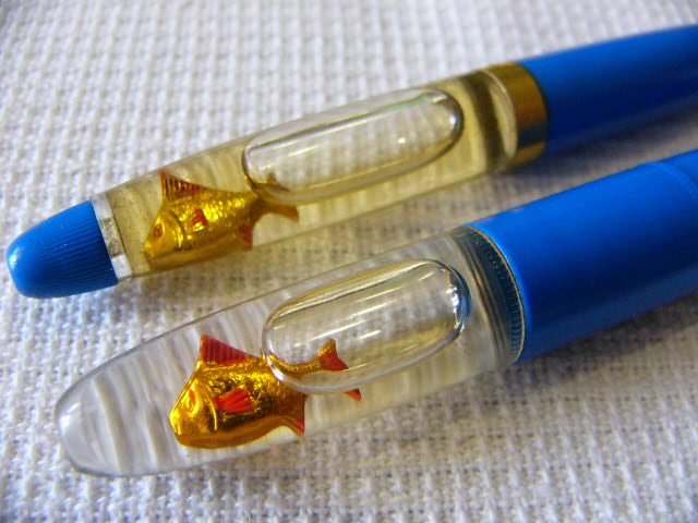 Корпус: небесно-голубой с жёлтым колпачком с рисунком и резервуаром с золотой рыбкой в вязкой среде.