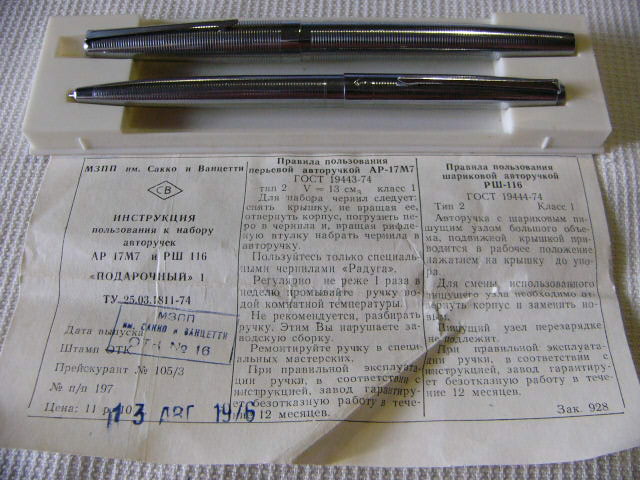 Одна Союз 65, другой- набор, шариковая плюс перьевая(хвост акулы)