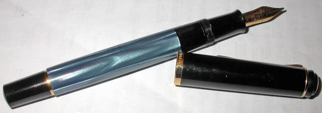 Pelikan M200- продана цвет - синий мрамор, перо - М. Как на фото внизу. Тоже практически новый. Пишет - средней линией с хорошей подачей чернил. Заправка - поршневая, колпачек завинчивается. Приятная особенность - даже после месяца в столе, ручка начинает писать мгновенно, не высыхает.