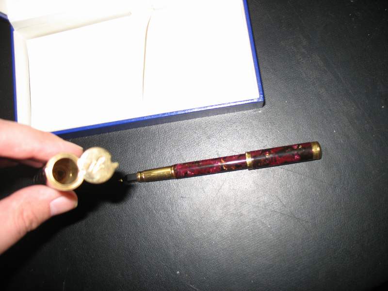 Ручка маленькая, колпачек без клипа, в комплекте футляр "сигарного типа" перо EF.