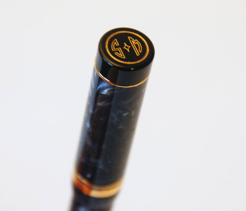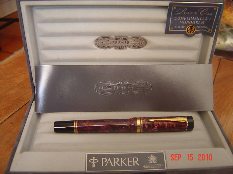 Эмблема (монограмма) на торце колпачка говорит о том, что эта ручка была изготовлена для членов Паркер Пен Клаб или еще какого сообщества, на е-бэй подобные экземпляры идут по цене около 700 долларов, видела и дороже.