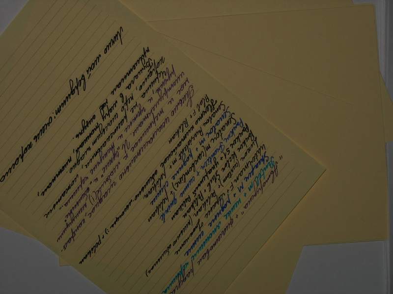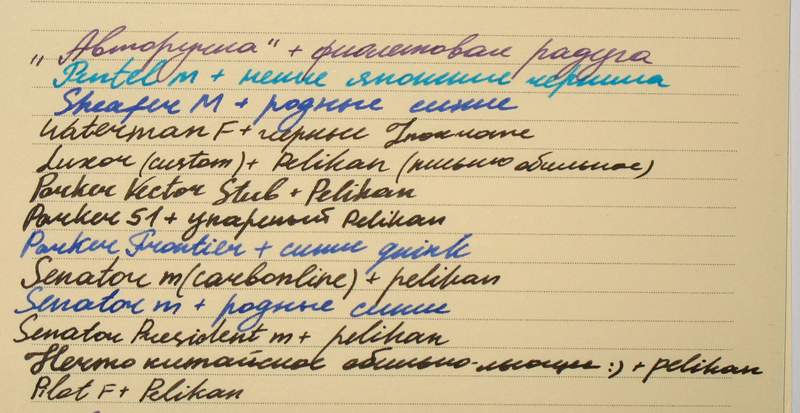 Ну и супруга будет писать шариковой ручкой (при чем скорее всего тонкой с биополимерными чернилами), мать чем под руку подвернется, а я, исессно, пером. Под эти требования будет подбираться и бумага. Лелею надежду на Note a book, в частности на их бумагу света "слоновой кости".