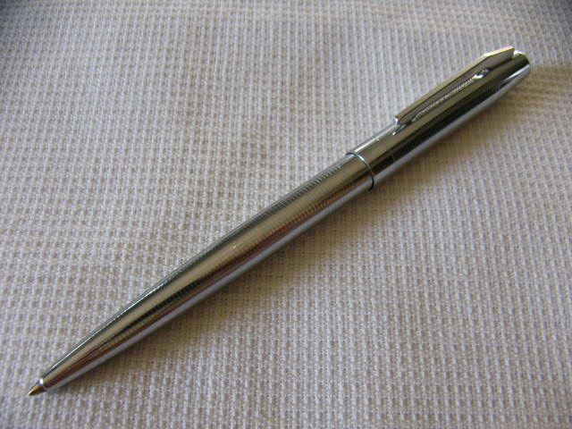 Авторучка полностью металлическая, нажимного типа, узкая и очень аккуратная.