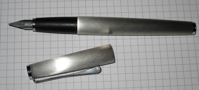 Lamy Studio Stainless Steel. 50$. Перо М, но подача не обильная и толщина линии не чрезмерная.