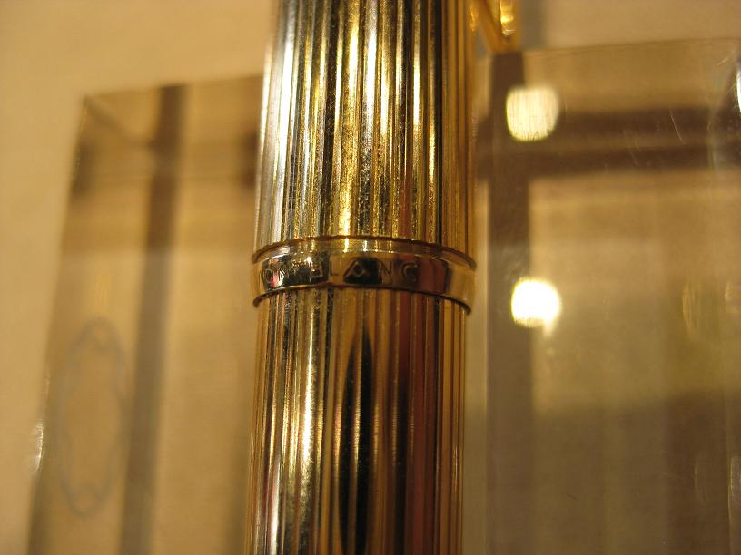 Эта ручка произведена из золота 585 пробы о чём свидетельствует проба, проставленная на каждом элементе ручки отдельно (на клипе, колпачке, корпусе). Интересно написание слова MONTBLANC на ручке. В букве "А" так называемая "перекладина" преломлена вниз.