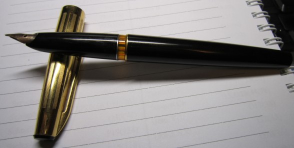 Дедушка сегодня нашел Советскую ручку у себя. С закрытым пером типа паркер 51, на клипе буква "М" как бы в квадратной окаемке. Колпачек стальной высокий, корпус черный, Грип секция выше чем на АР-65. конвертер Поршневого типа не сьемный. Перо Стальное.