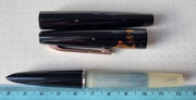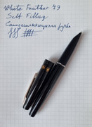 White Feather 79, Китай ~1979 г. Почти обычная китайская ручка, но система заправки Self Filling, как у Parker 61 FP. Ручка немного потолще "обычной" White Feather. Корпус из алюминия покрытого чёрным лаком. На торцах колпачка и барреля объёмные буквы W и F. Перо позолоченное, пишет очень тонко ~EF. Состояние отличное.