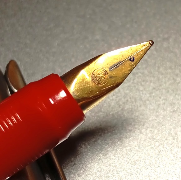 Сразу решил про себя, что это не Китай, вещь добротная, не кричащая, хоть и ученическая. 3 эмблемы пеликана, надписи на колпачке PELIKAN W.-GERMANY, на клипсе Pelikano. Перо стальное, но с каким-то желтым покрытием, которое, впрочем, слезло местами, ручку окунали в чернила лет 10 назад, да так и не промыли.