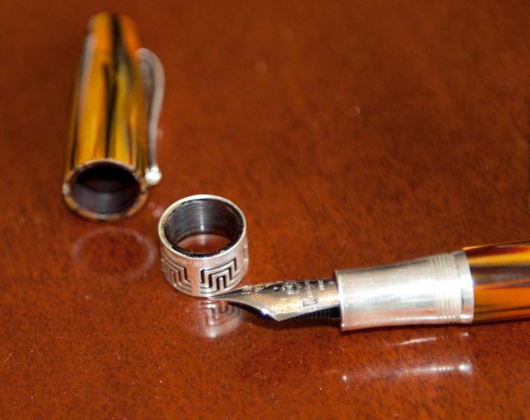 Ручка была закручена как полагается, при ударе о пол отлетел колпачок – серебряная завинчивающая часть осталась на ручке. Иными словами колпачок развалился на 2 части. Первая часть это серебряное колечко (с резьбой внутри) вторая часть сам колпачок… Что делать примерно догадываюсь… Только не знаю кто такое может сделать…. По сути нужно рассверлить обе части (сделать тоньше стенки – сейчас стенка порядка 2.5 мм) и вклеить внутрь продолговатую металлически или пластиковый цилиндр с резьбой и будет работать… Только кто такое может сделать? Может и по другому как то можно.. в общем нужен мастер. Буду очень благодарен если подскажите такого – которому можно добавить свою любимую ручку… Если нужны фотки – выложу.