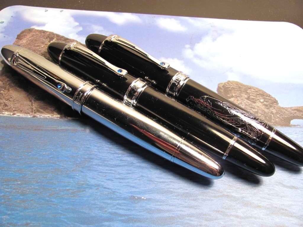 Сидя долгими вечерами у компьютера,задался целью - с помощью интернета подыскать ручки в качестве подарков для приобщения друзей и родственников к письму пером.Учитывая отсутствие выбора хороших и недорогих ручек на местном рынке(нет,у нас ,конечно,Паркер с Ватерманом можно встретить на каждом углу, да и Монтблан с Монтеграппой дилером представлен,даже лимитированные серии есть - но это далеко не дешёвые ручки), я обратил своё внимание на бюджетные модели,коих в мире предостаточно.Выбор пал на ручки марки "Bulow" (Бюлов).Несмотря на то,что это немецкий бренд,ручки производятся в Китае,под неусыпным контролем европейских специалистов (?) - я слабо в это верю,ИМХО...Итак,первая серия из 3-х ручек - это X530.Разница между ручками в покрытии и цвете корпуса.Сразу оговорюсь - аналогичная серия Х530 есть и у китайской Jinhao,причём они настолько похожи,что сразу и не отличить.Для сравнения я выкладываю фото 2-х Бюлов и Конфуция от Jinhao...