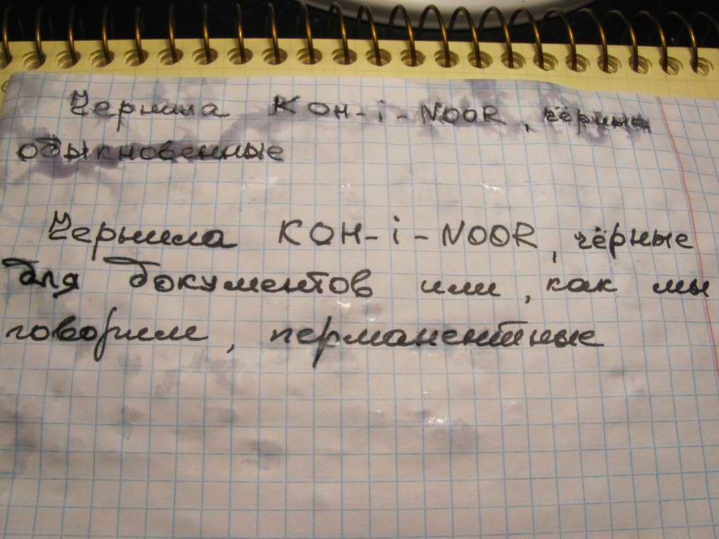 | Shina писал(а): | | Как и обещал,выкладываю фото черных Кохинур.На первой фотографии лист ещё мокрый,вторая фотография - скан высушенного листа.Разница ощутима,как в насыщенности цвета,так и в размывке.На всякий случай ещё раз подскажу - при пользовании перманентными чернилами старайтесь чаще промывать ручку обыкновенной водой. |