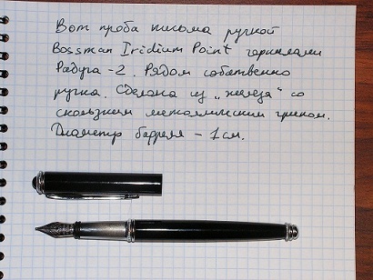 Мне Bossman досталась "по наследству" без картриджа. Выглядит по-другому,нежели на преведенных выше фотографиях. Сказал бы нетолстая сигара. Тяжелее, чем Parker Jotter, и перо кажется более твердым, не гнущимся. "Размер" пера Н, если такие бывают. Постараюсь при дневном свете сделать фотографии. Картриджи еще не искал, сомневаюсь, что в нашем городе есть выбор.