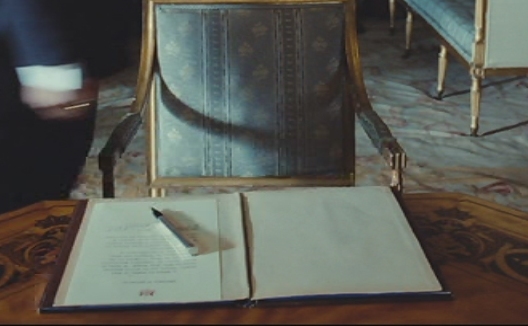 Вторая ручка из "Король говорит". Ей Георг 5 подписывает указ о назначении наследника.