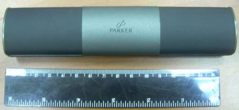 Пластиковый оригинальный футляр, размеры показаны на фото, изначально в нем лежал Паркер Sonnet Stainless Steel GТ какой-то особой серии, посвященный какому-то там событию, уже не помню какому - прошло около 5 лет после покупки. Саму ручку успешно потерял . Когда покупал, этот Parker вместе с этим футляром, документами и картриджами были упакованы в необычную фирменную треугольную коробку, которую 2 года назад выбросил вместе с документами из-за переезда. Остался один только этот футляр. Возможно, он подойдёт не только к Соннету. Сам футляр не обычный - у него крышка может, открываясь, свободно вращаться вокруг нижней части футляра (что заметно по фото), но при этом футляр остаётся неразъёмным. Не знаю, как это у него получается - то ли магнит внутри корпуса, то ли ещё как-то. Не понимаю этого.