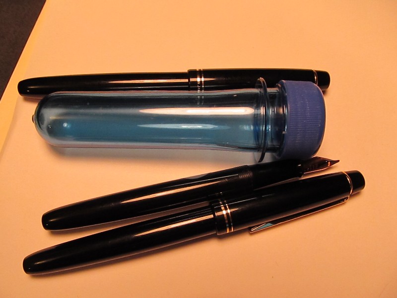 | Я уже привык по-старинке - 30мл емкость из нержавейки, о которой сказано выше и шпрЫц. Тем более, что там, где приходится бывать сама уже перьевая ручка (абсолютно любая), выглядит как драгоценный музейный экспонат.