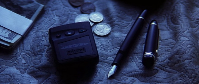 Вот еще, французская лента "Жизнь другой (женщины)". У главной героини в исполнении Жюльет Бинош (она глава инвесткомпании по сюжету) вот такой вполне узнаваемый набор на столе. Правда, судя по манере держать ручку, пишет она не пером.