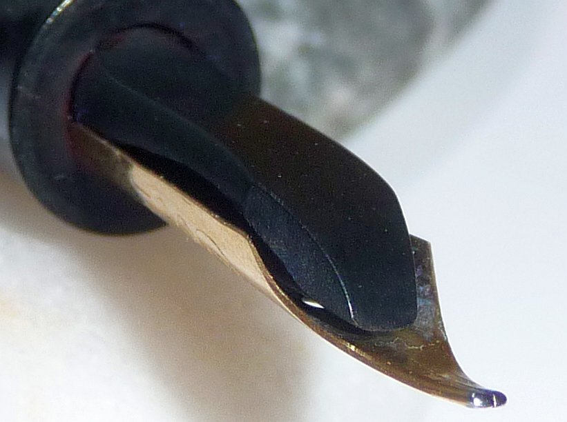 за исключением кончика с небольшой горбинкой где фидер уже заканчивается, кривизну пера с помощью иглы невооруженным глазом я не увидел.