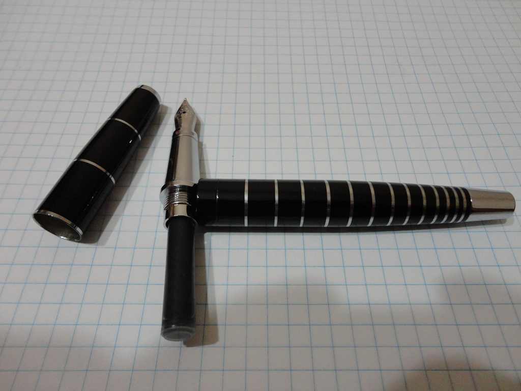 Положительное - хорошее перо, пишет мягко, жирность вроде емка. В целом перьевая ручка скорее женская, ибо очень уж небольшого размера в целом...