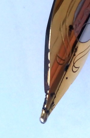 давно хотел написать о том, что произошло с пером моей ручки Kaigelu. В принципе я был доволен как она пишет, мне не нравился только ее чрезмерный вес. Но вот через какое-то время перо разъела какая-то коррозия. Заправлял я ручку в основном китайскими чернилами Hero, но эти чернила пока не повредили перья других ручек, так что я думаю, что просто перо Kaigelu было сделано из какого-то нестойкого материала.