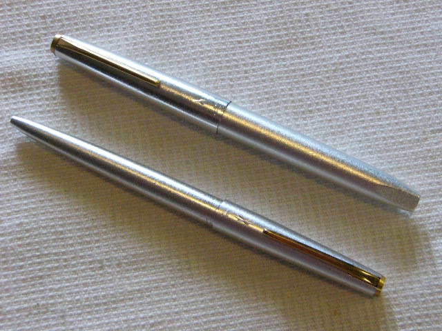 Продам комплект "Алюминиевый": перьевая авторучка с золотым пером и шариковая ручка нажимного типа!