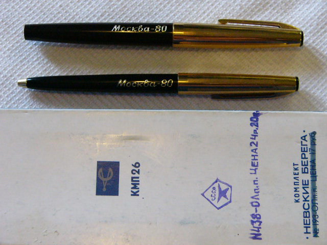 Корпус: черный с надписью "Москва-80" и жёлтым колпачком с рисунком.