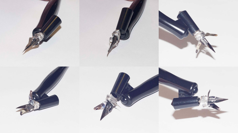 Вот купила в художественном магазине несколько бронзовых перышек, широких а-ля стаб 1.1, чуть гибкие (Manuscript). Они не хотят писать. В момент соприкосновения с бумагой - чернила стекают, сразу жирная клякса, а далее остатка чернил на пере хватает едва-едва вывести пол буквы. Прокалила одно перо на огне (мне показалось, что где-то читала, что вроде бы надо). Все равно как-то безуспешно все.
