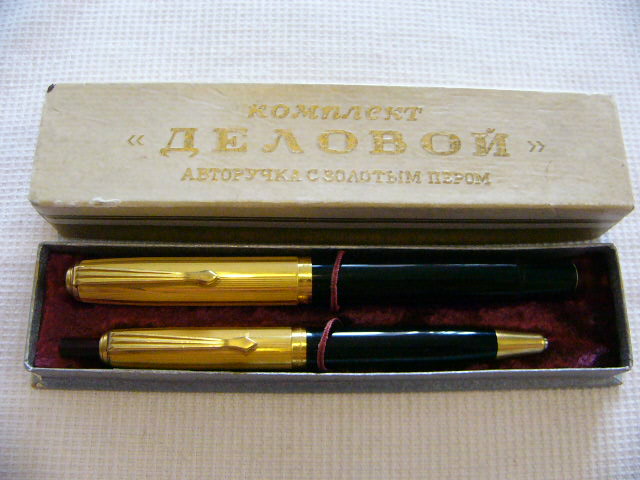 | паровозик писал(а): | Продам комплект "Деловой": перьевая авторучка с открытым золотым пером и механический цанговый карандаш.