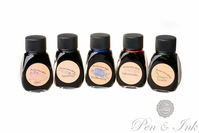 Серия Cryptid- "мифические монстры". Усиленные чернила, практически перманентные, абсолютно безопасны для перьевых ручек. Производственная линейка состоит из 7 цветов- в названии каждого используется имя мифического существа. Например черный кракен, коричневый йети, бирюзовая русалка и др. Поставляются в стеклянном флаконе обьемом 60 мл.