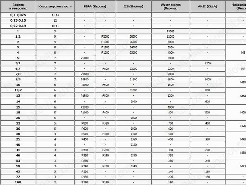 В этой таблице в графе Water stones (Япония)-гриты, а где микроны-видно и так.