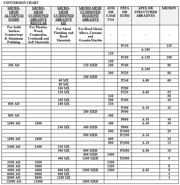 Уважаемый ЮрийЮВ, на самом деле не все так просто. Часто производители используют свои собственные гриты. Так, гриты из графы Water stones (Япония) немного отличаются от тех, что использует, в частности, Micro-Surface Finishing Products, Inc., производящая палочки для полировки, о которых спрашивал коллега Doost.