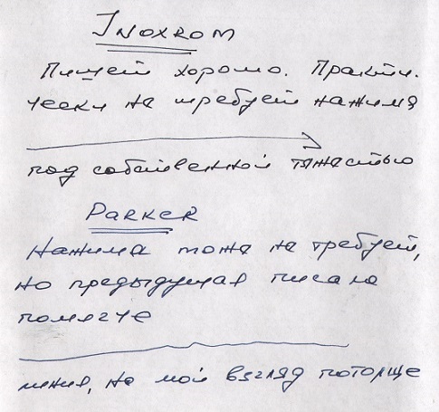 Собственно результат спора на бумаге, если еще помним с чего все начиналось, то по качеству письма Inoxrom не уступает Parker.