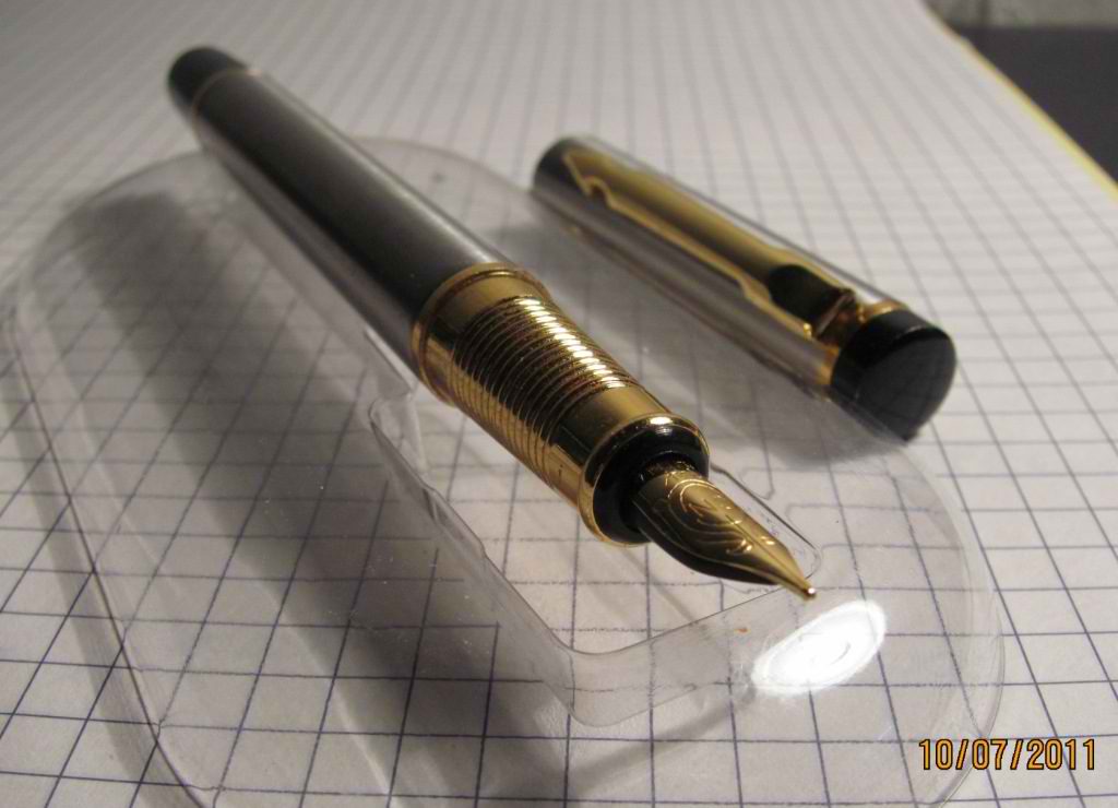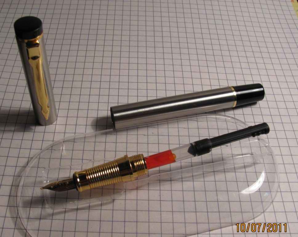 Через какое-то время ручка сломалась. Отлетел "набалдашник" возле пера, на который ручка защелкивалась в колпачке. Так что лежит счас в качестве чучела перьевой ручки.