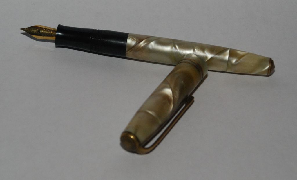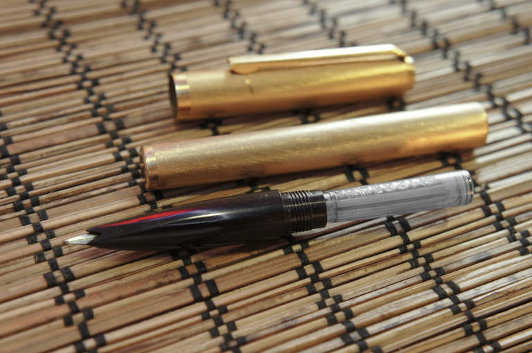 Купил ручку. Подозреваю, что поздний СССР. Корпус - латунь. Маркировки нет. Но внутри - катридж, на котором стоит цена - 8 копеек.