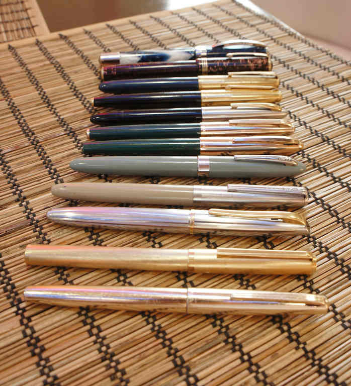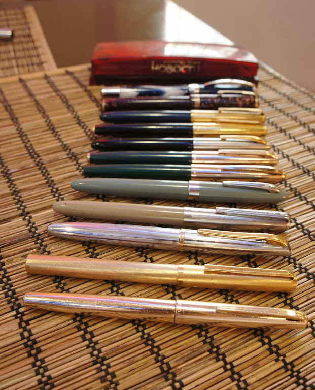 Ну, много китайских. В том числе редкие и старые (с золотым накручивающимся пером и двусоставным пером - накручивается нержавейка со вставкой рабочей части из золота).