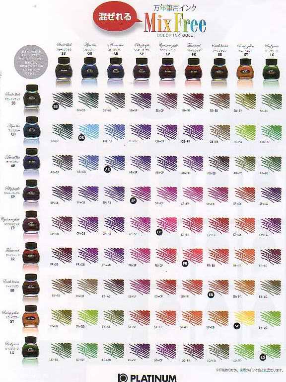 Чернила один в один,разницы не увидел... Замутить можно,например с "японцами",они к своим флаконам из 9 цветов ещё и карту смешивания прикладывают.
