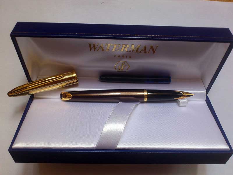 1. waterman carene deluxe перо f, полный комплект (коробка-бумажки-картридж-конвертер).