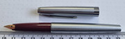 Корпус из сатинированной, хромированной латуни. Грип-секция из смолы бордового цвета. Колпачок на трении. На колпачке, под клипом - лого завода, на противоположной стороне - знак качества СССР. Система заправки, встроенный конвертер. Перо золотое 583 пробы, очень мягкое, ~ EF-B. Состояние NOS (только макнул перо). При необходимости можно подготовить ручку к работе.