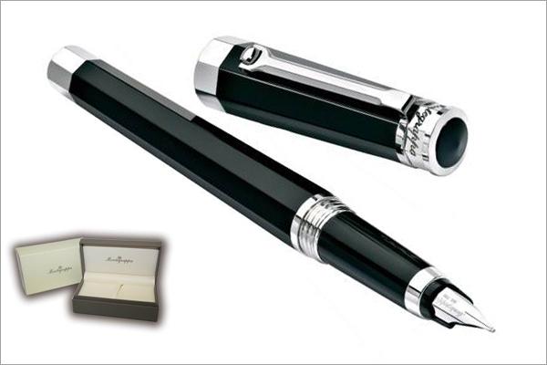 Перо - белое золото, 18К. Корпус, колпачок - акриловая смола. Элементы отделки - покрыты платиной. Съемный (отворачиваемый) колпачок. Система заправки - чернилами с помощью картриджа. Подарочная коробка. Толщина пера F